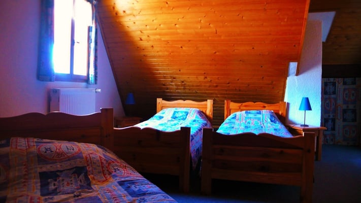 1 chambre équipée de 3 Lits simples avec SDB privative équipée WC et douche. Fenêtre exposition N/Ouest vue village.